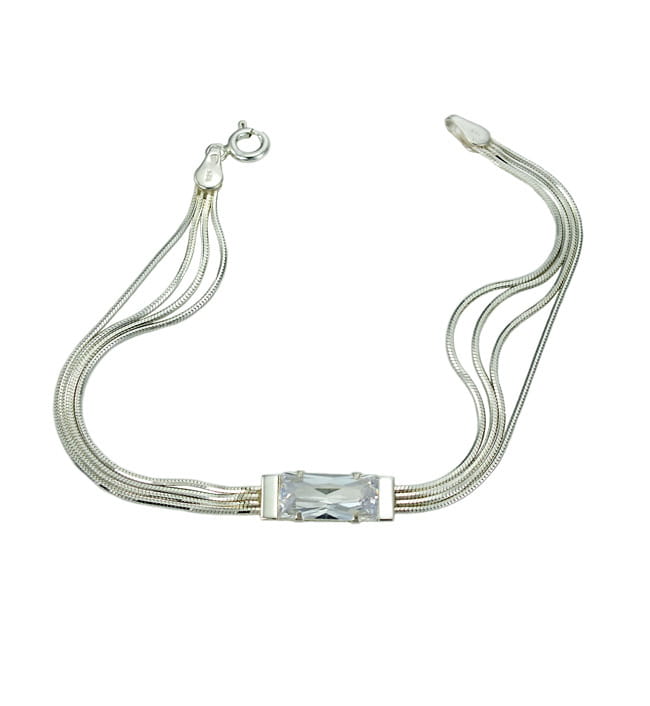 Piękna Srebrna Łańcuszkowa Bransoletka z Cyrkoniami !!!