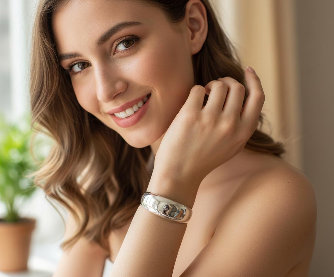 Piękna Srebrna Sztywna,Gładka Bransoletka !