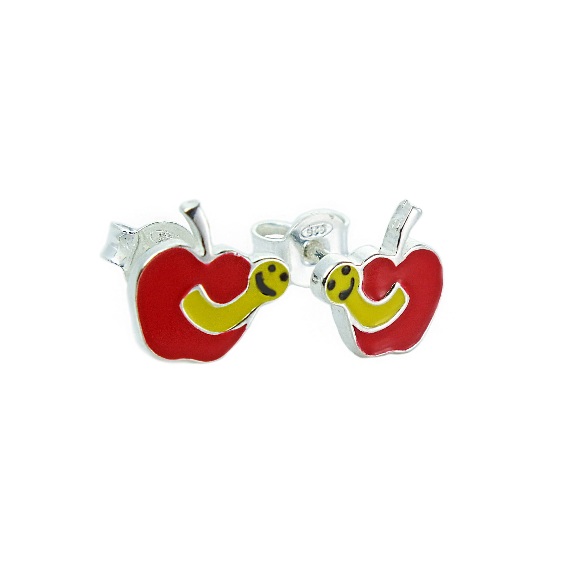 Piękne Srebrne Kolczyki dla Dziecka - Robaczek w Jabłuszku dla Twej Księżniczki !!