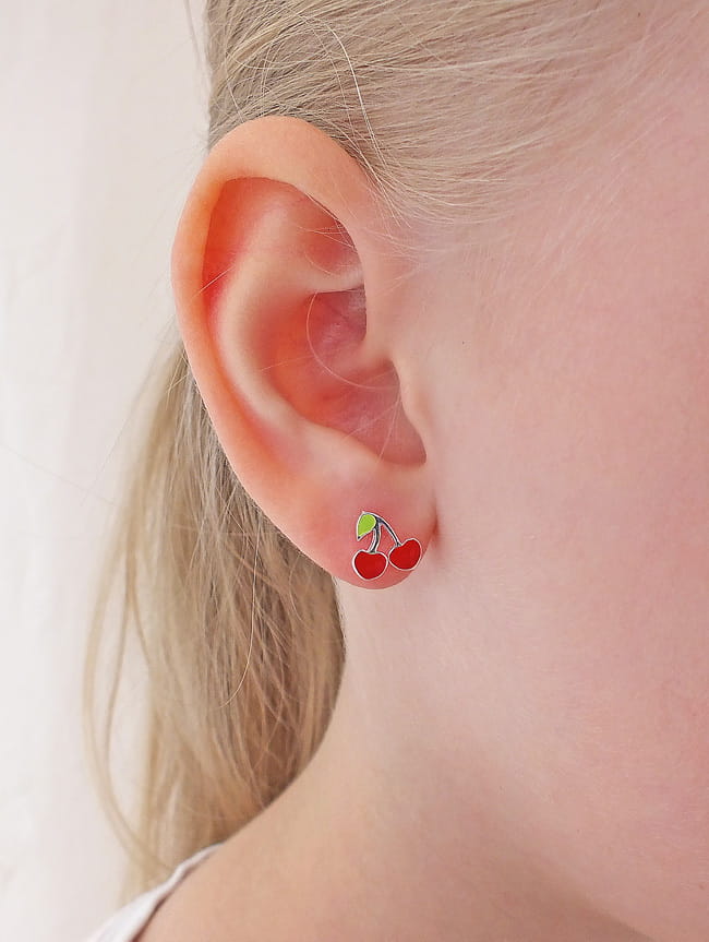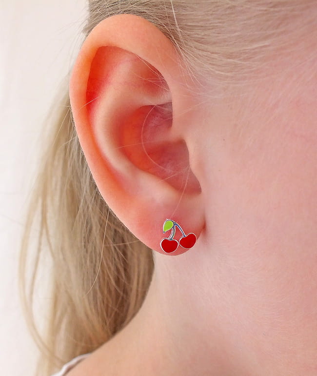 Srebrne Rodowane Kolczyki Wisienki na Biglu dla Twojej Księżniczki !