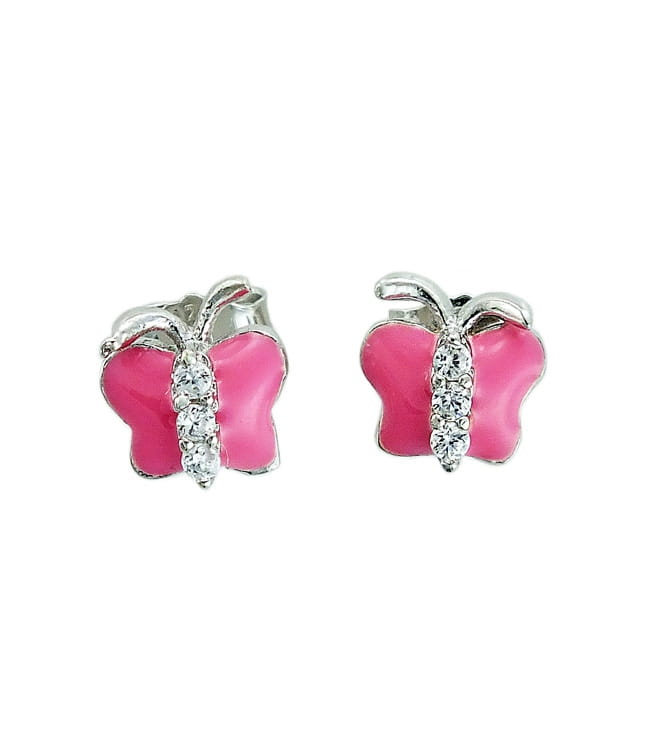 Srebrne Rodowane Różowe Kolczyki Motylki z Cyrkoniami na Sztyft !!