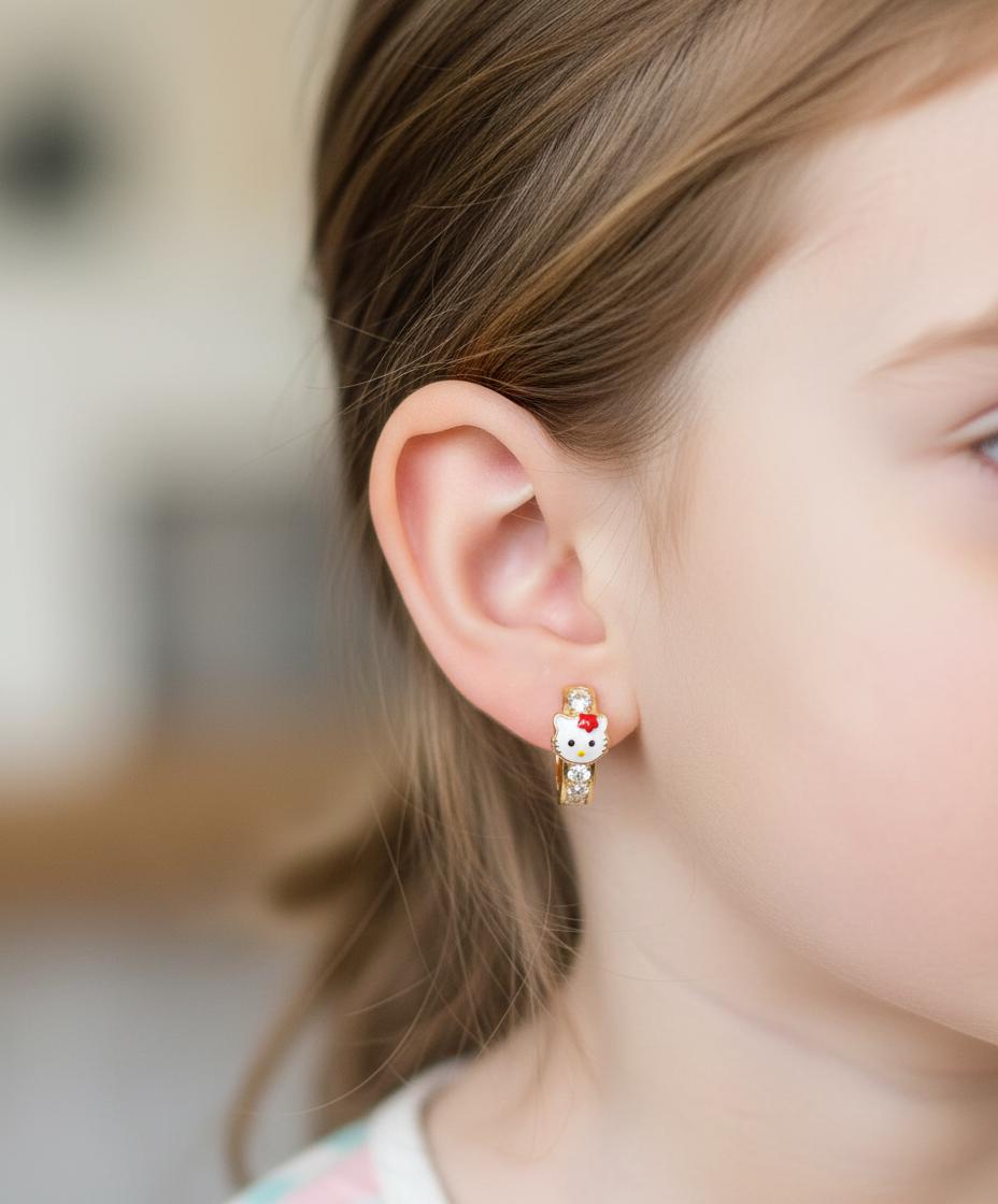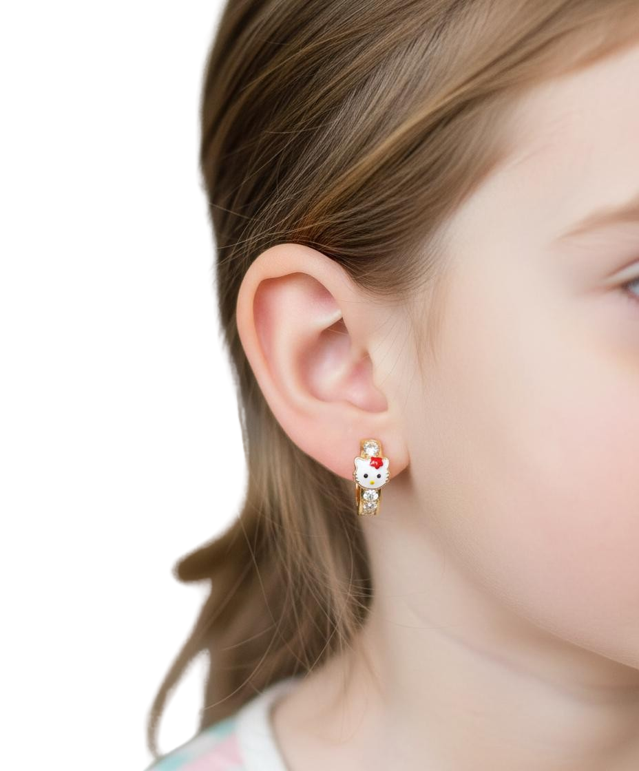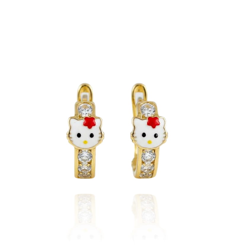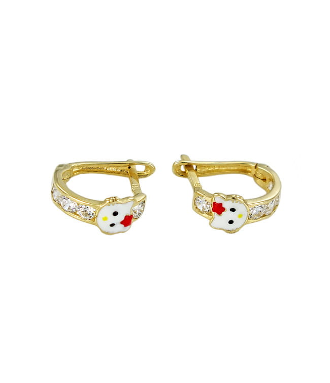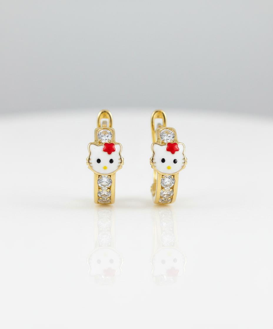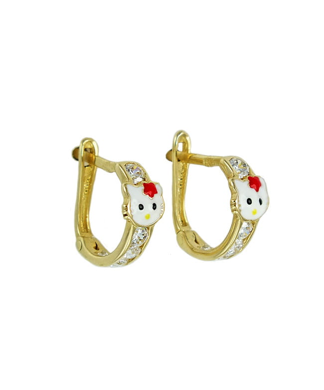 Piękne Złote Kolczyki Kotki Ręcznie Malowane z Cyrkoniami - próba 585 !!