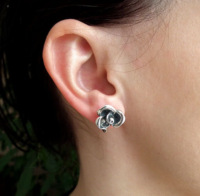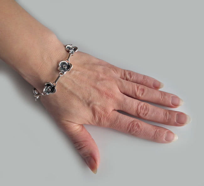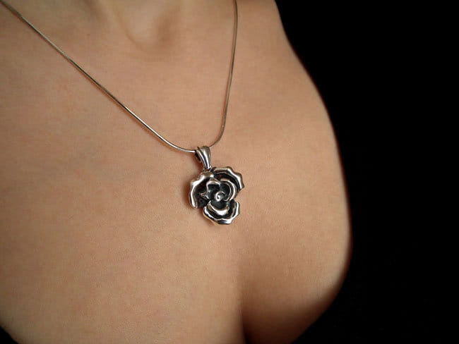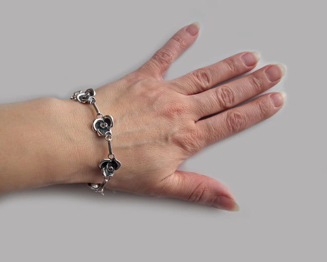 Piękny Srebrny Oksydowany Komplet Efektowne Róże Różami