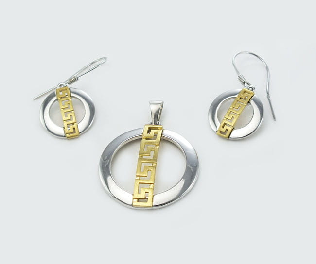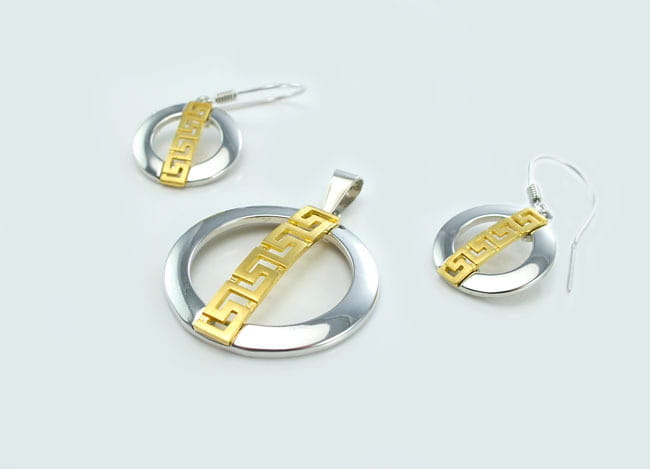 Piękny Srebrny Komplet Grecki Wzór !!! Rodowany i Pozłacany !!!