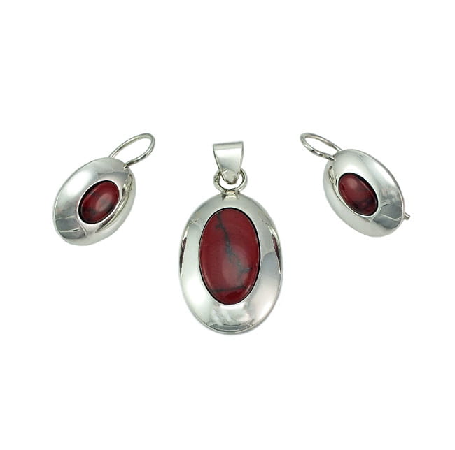 Srebrny Komplet z Jaspisem - Prosty Wzór Ręczna Robota !!!