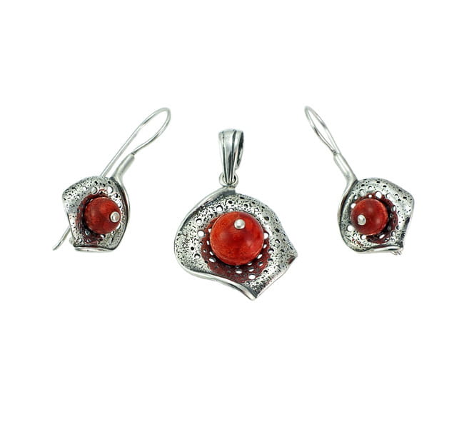 Piękny Srebrny Komplet z Koralem Zobacz Koniecznie !!! K-1