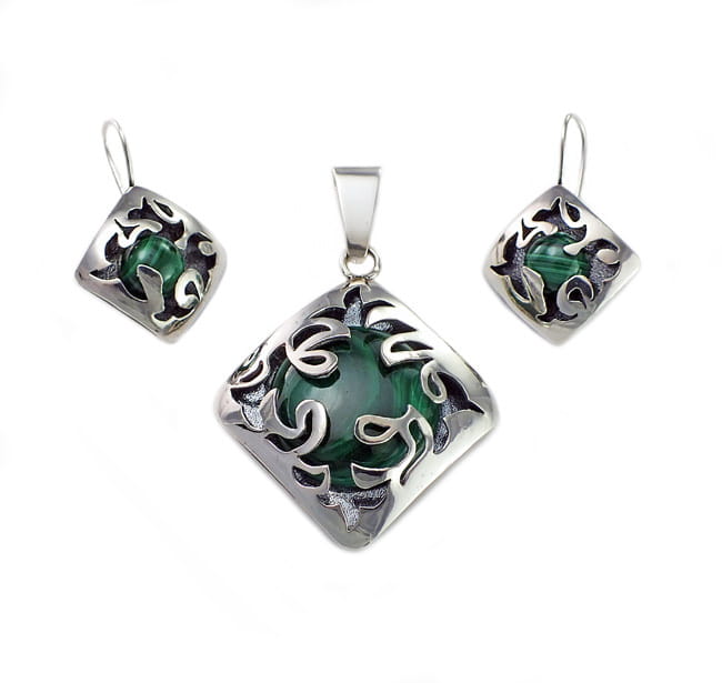 Srebrny Oksydowany Komplet z Malachitem - Polecam !