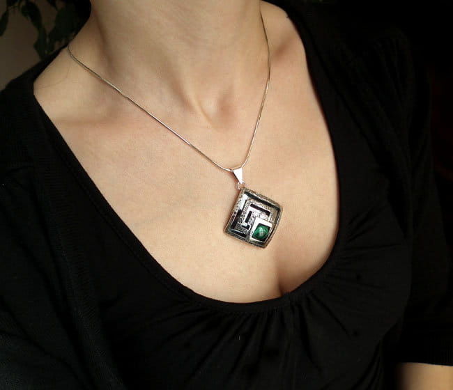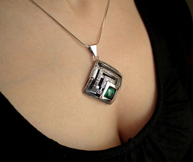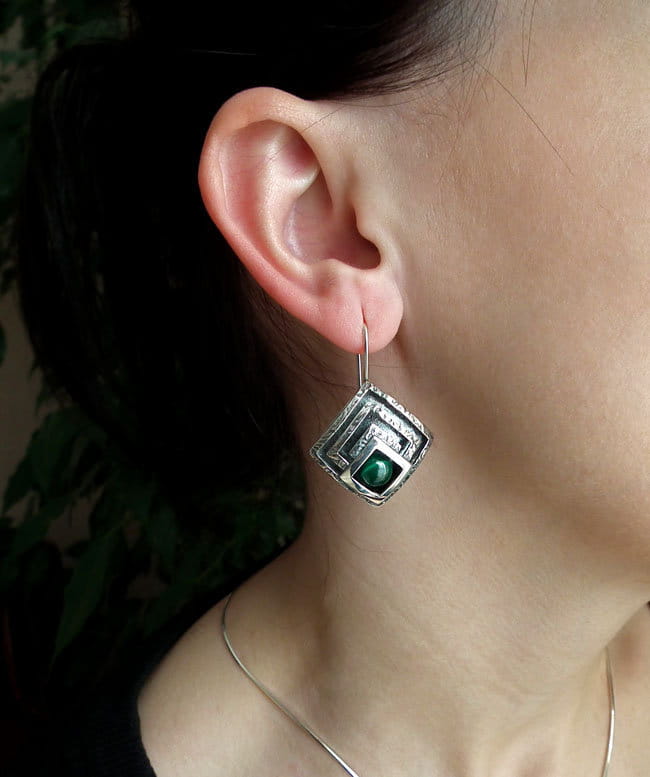 Piękny Srebrny Komplet z Malachitem.