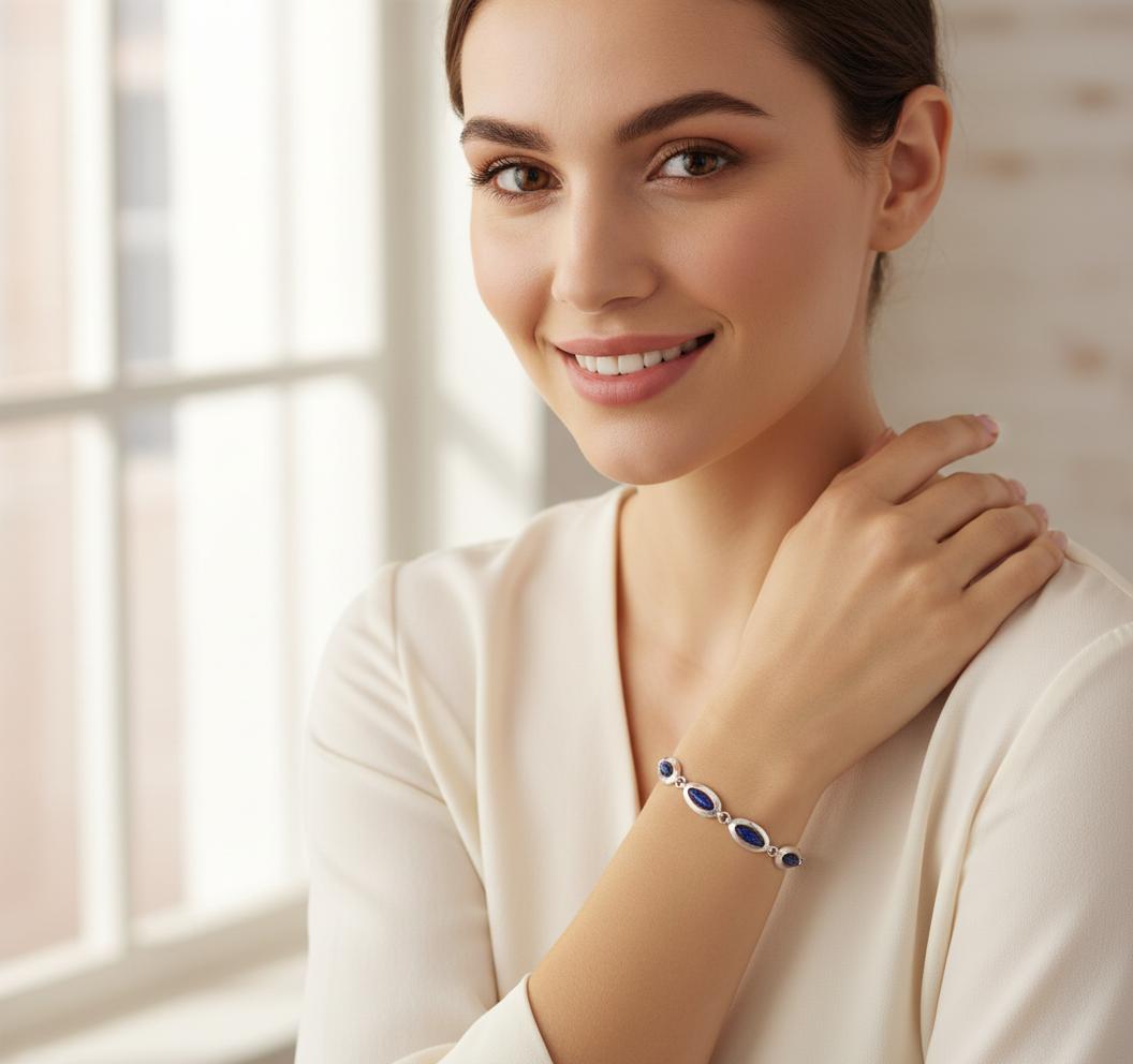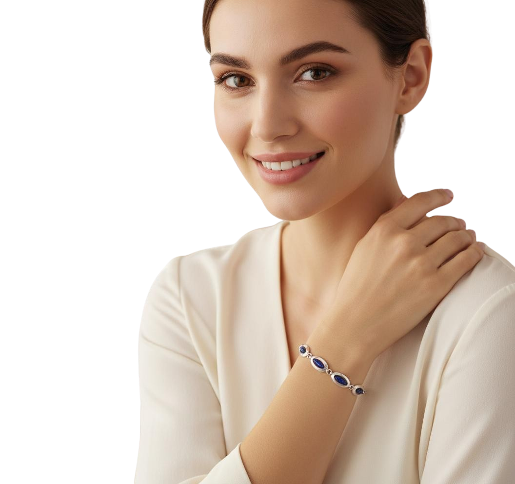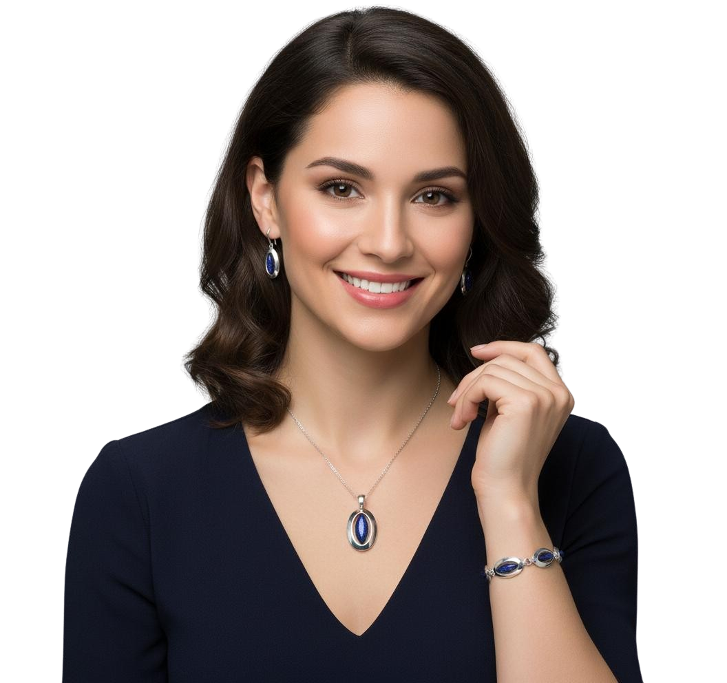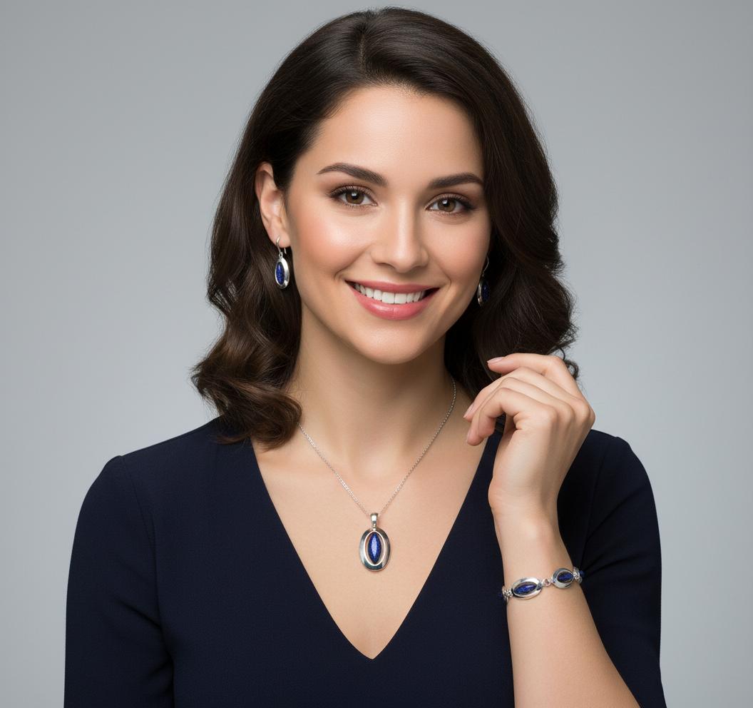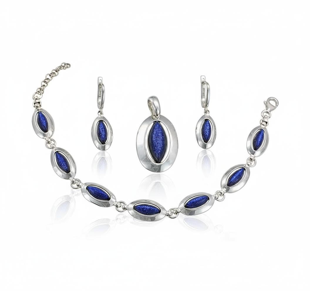Piękny Srebrny Komplet z Nocą Kairu Jasny Granat Słoneczny Niebieski !!! P-1