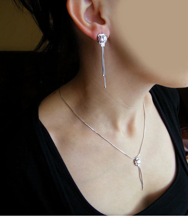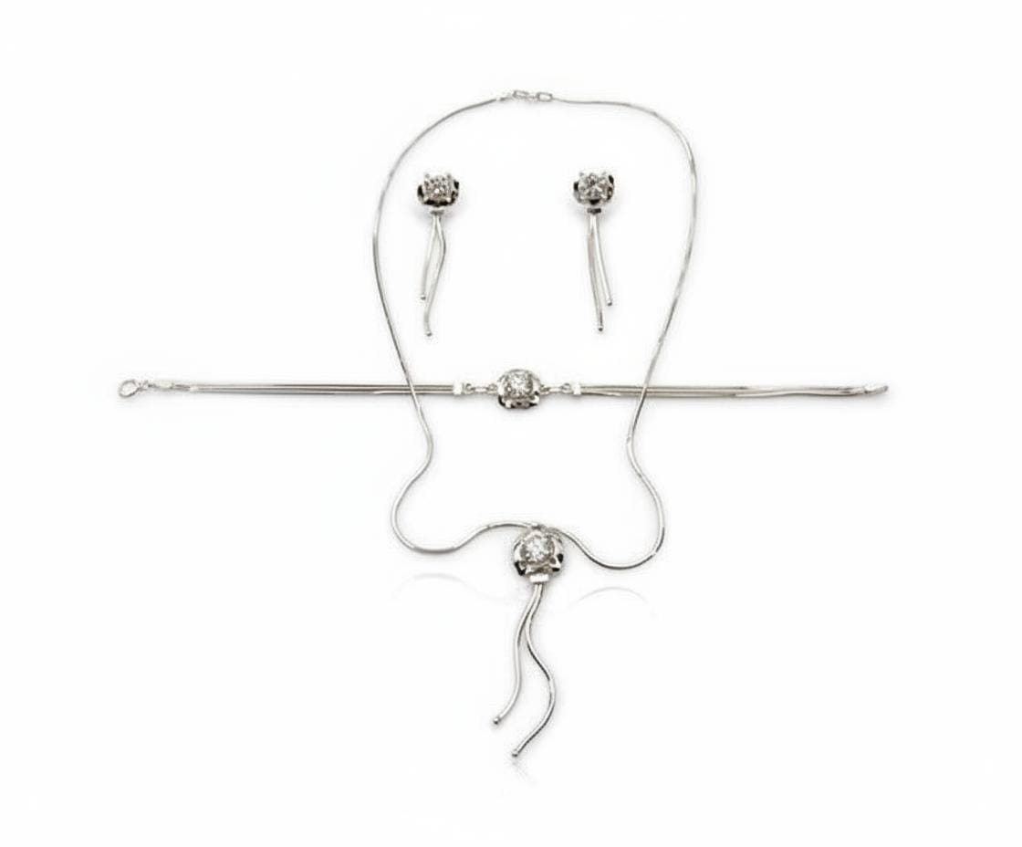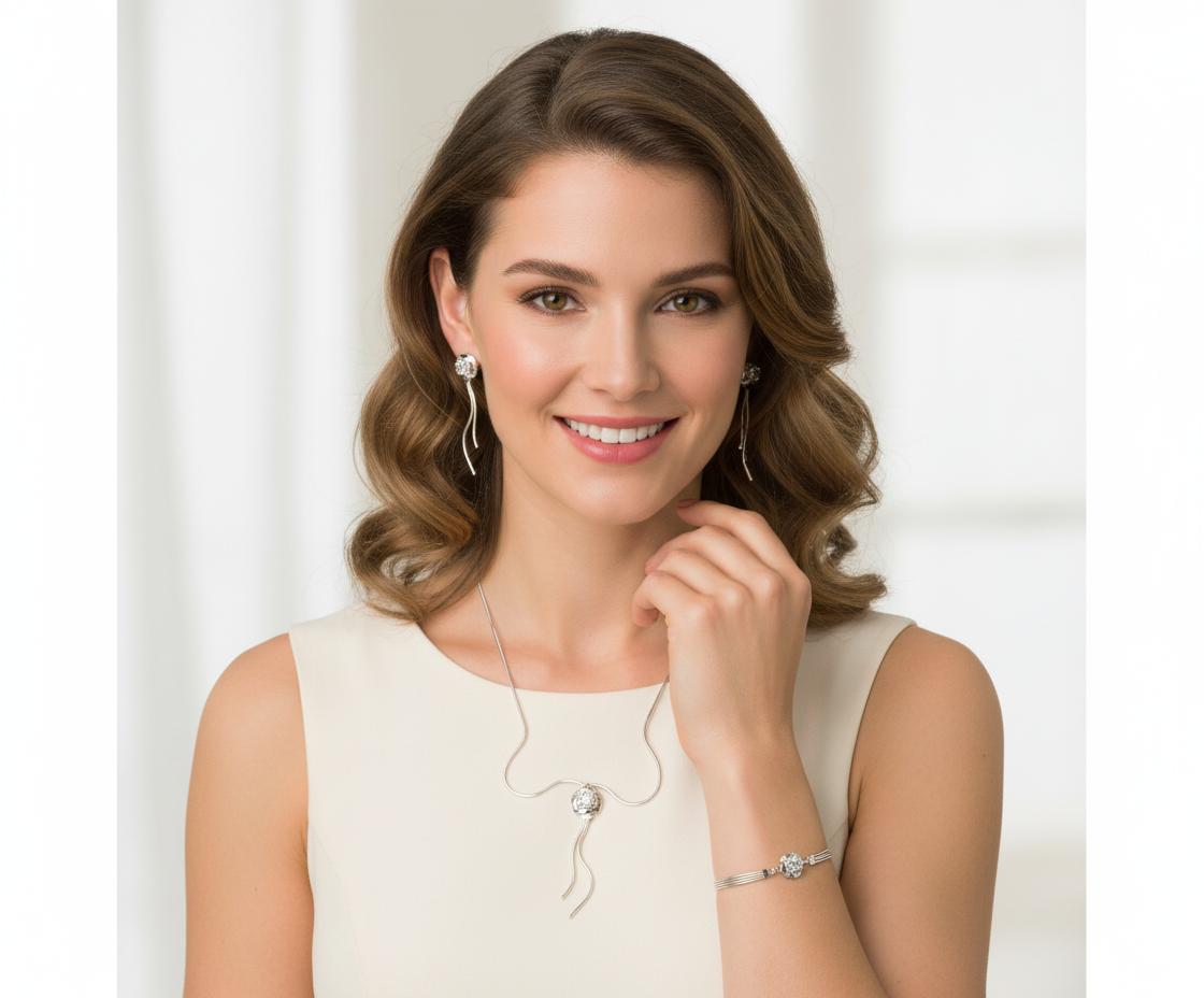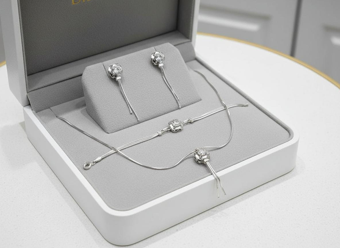 Piękny Srebrny Łańcuszkowy Komplet z Cyrkonią!