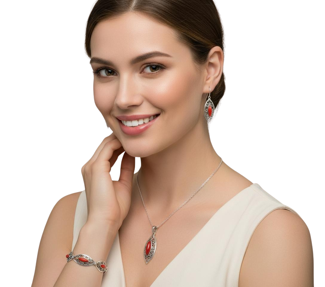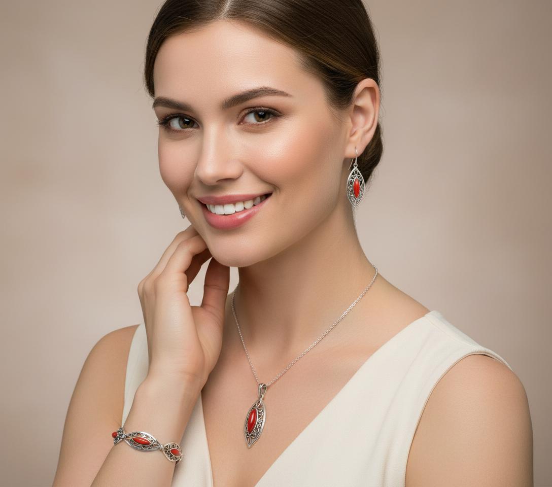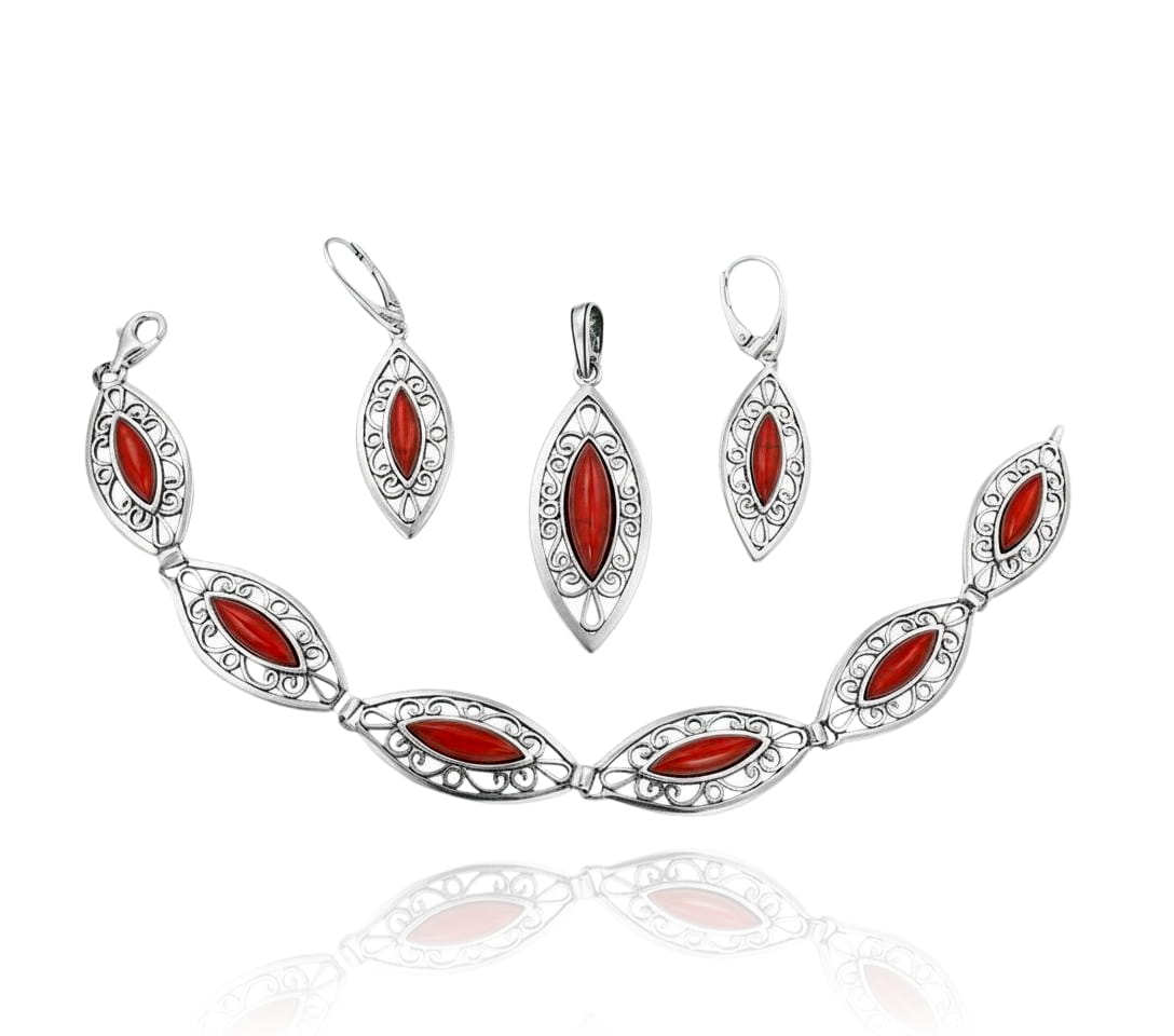 Szerokość - Bransoletka 1,4 cm. Wisiorek 1,7 cm. Kolczyki 1,4 cm.