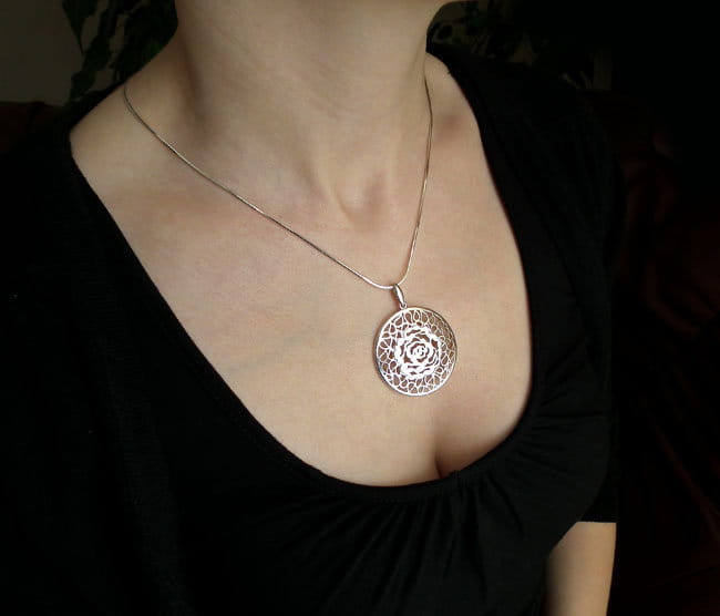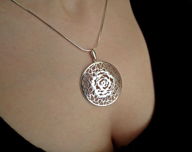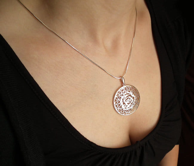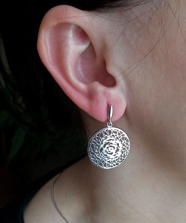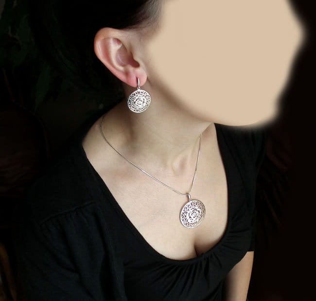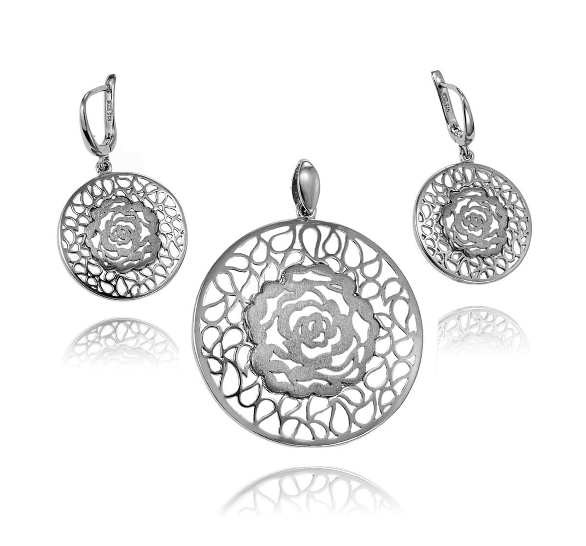Srebrny Rodowany Ażurowy Komplet Róża