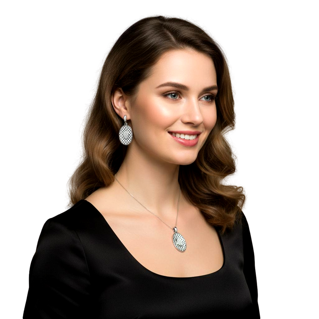 Piękny Srebrny Rodowany Komplet z Cyrkoniami !!! Jakość !!!