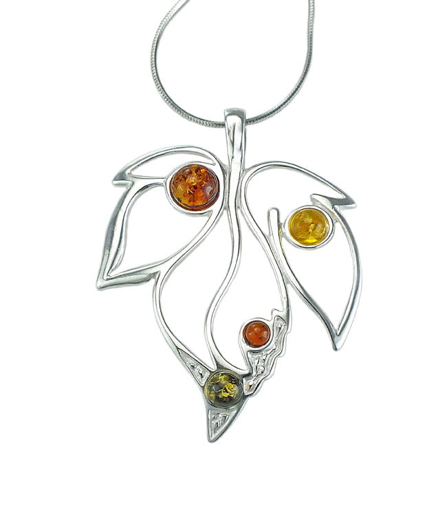Piękny Srebrny Wisiorek Liść z Bursztynem !!!