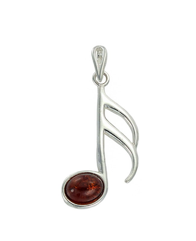 Piękny Srebrny Wisiorek - Nutka z Bursztynem !!!