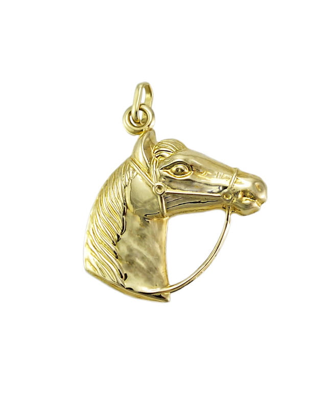 Piękny Złoty Wisiorek Koń z Uzdą - Głowa Konia !!