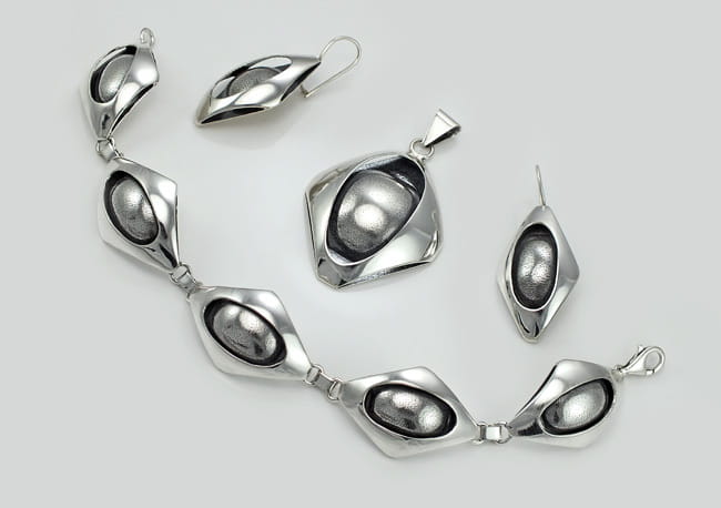 Szerokość - Wisiorek 4,7 cm. Kolczyki 2 cm. Bransoletka 2,2 cm.